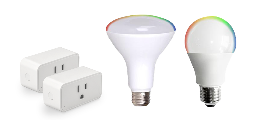 The Smart Home Bundle includes (2) WiFi Smart Sockets, (1) Smart LED, 9W (60 equiv.) and (1) BR30 Smart LED Flood, 9W (60 equiv.)